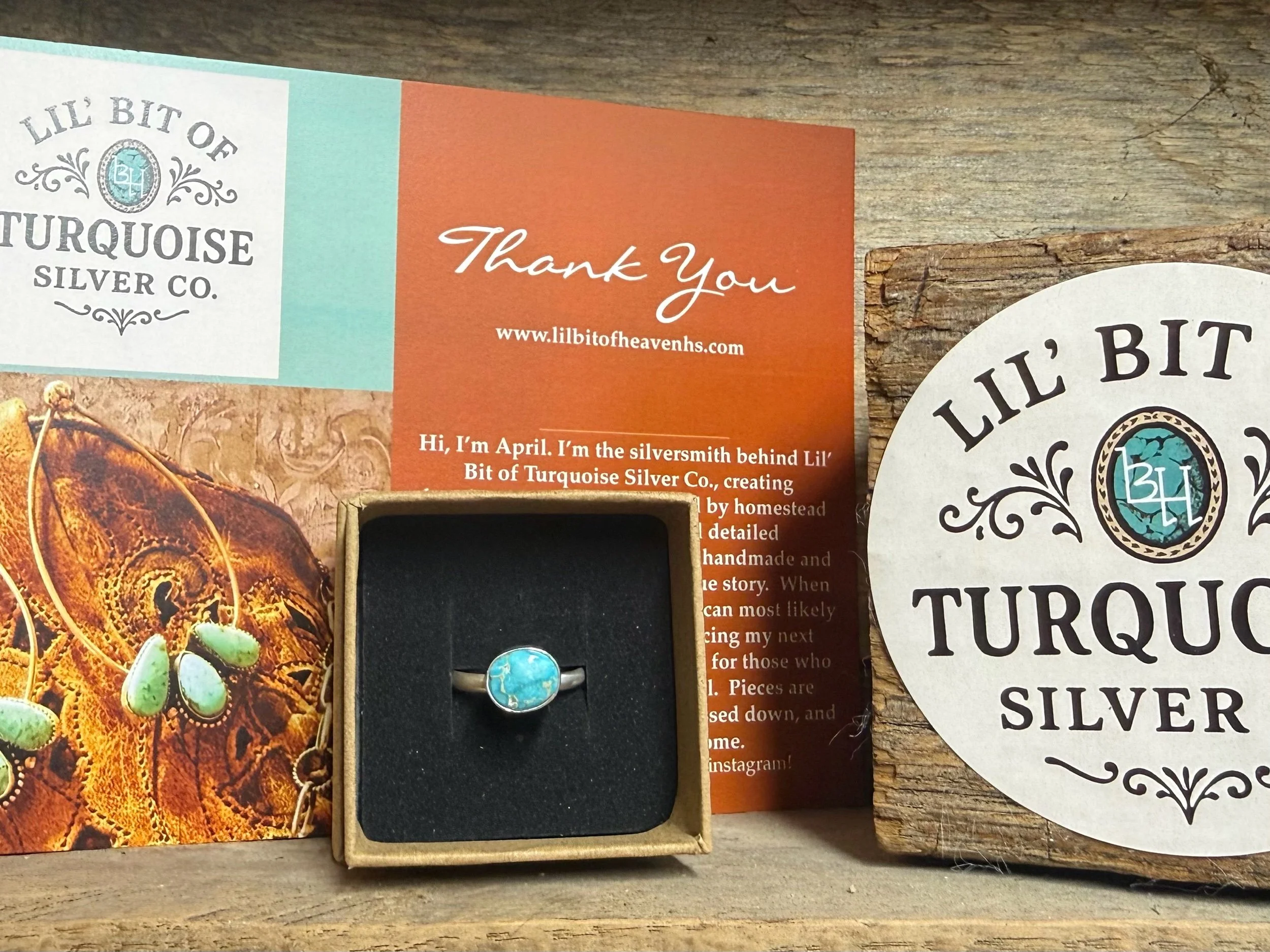 Sometimes simple, and plain is so classy. Sierra Bella Turquiose oval set in a simple plain adjustable band. Great to compliment a set of stacker rings.